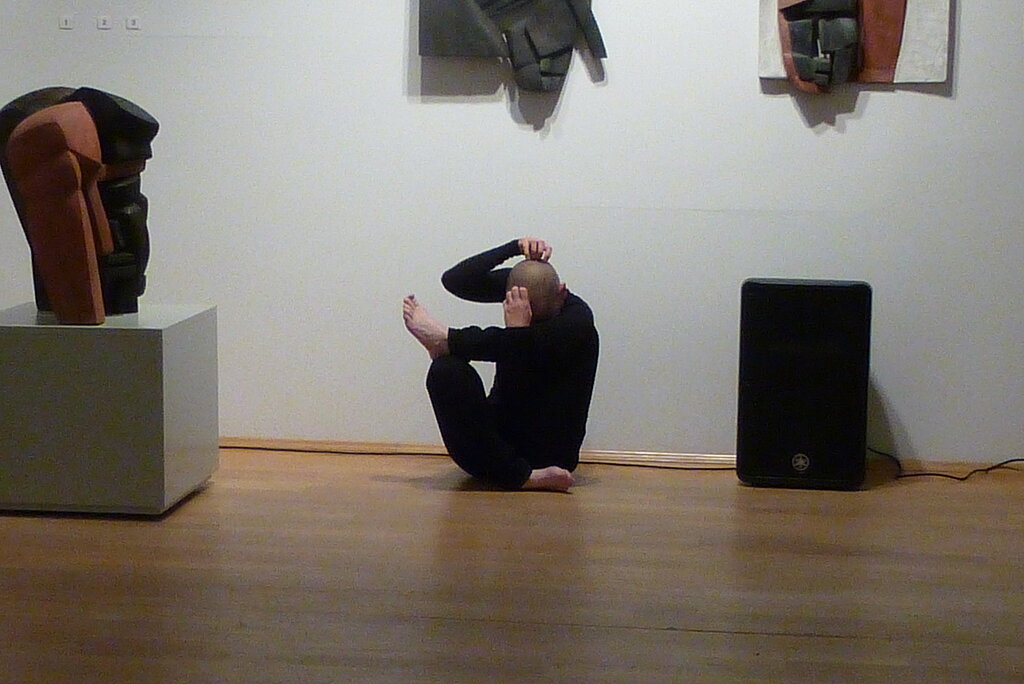 In einer Live-Tanz-Musik-Performance fand am 12. November diese Arbeit, inmitten ausgestellter Skulpturen und Zeichnungen, während einer Ausstellungseröffnung von Beate Debus, in der ada Galerie in Meiningen ihren Abschluss.