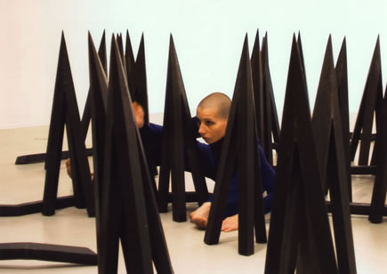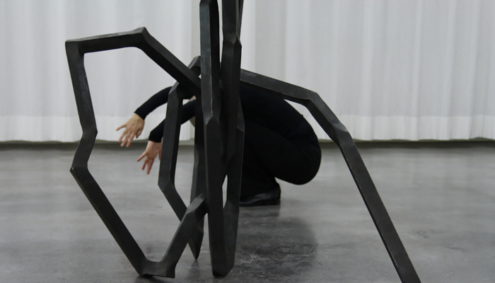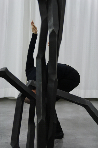 dance becomes an intensive improvised dialogue with sculpture, a found form of body-material...