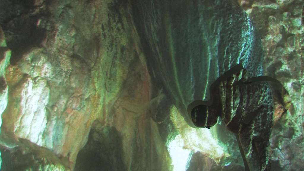 Um die GROTTA GATTARA zu erreichen läuft man durch einen idyllischen, fast parkähnlichen Wald, am Rande des Bergdorfes Gratterie, unweit von Cefalú. Es ist eine kleinere bzw. eine nach Außen gelagerte Grotte mit einem Innenraum… es sind Stein-Wesen, sowohl nach außen als auch nach innen gewendet, zu finden. Innen ist hier sehr klein, es passen vielleicht zwei Menschen hinein. Eine schmale Treppe führt über einige Meter nach oben auf eine Plattform. Eine Erscheinung in grünen Farbtönen beherrscht den Raum und viele Spinnennetze, die im Licht schimmern…