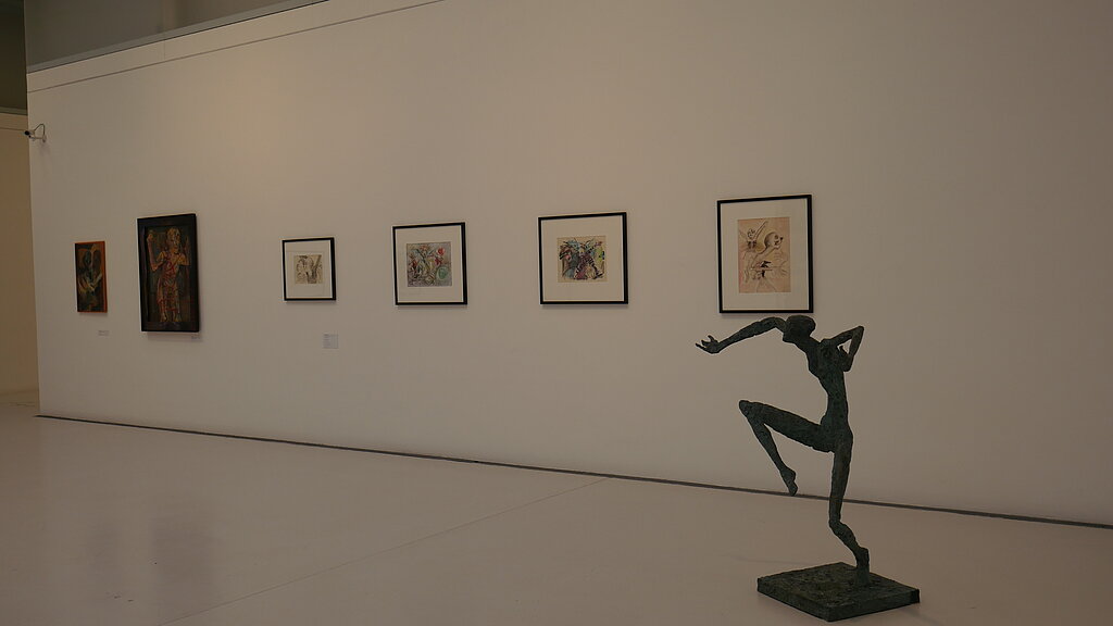 Vom 07. September bis 16. November 2025 wurde im Brandenburgischen Landesmuseum für moderne Kunst (BLMK) Dieselkraftwerk Cottbus eine Ausstellung präsentiert, die sich KüntlerInnen zugewandt hat, die sich von meinem Tanz inspirieren ließen und Kunstwerke erschufen, in denen ich als Motiv im Mittelpunkt stand. So waren Bilder, Plakate und Filme zu sehen, die mich in sehr unterschiedlichen Interpretationen zeigten. In der Hauptsache waren es im 1. Raum Werke aus den 80iger Jahren. In einem 2. Raum wurden KünstlerInnen gezeigt, die auf mich einen großen Einfluss ausübten, u.a. Carlfriedrich Claus und Mona Höke. Der 3. Ausstellungsraum war unserem Duo cri du coeur mit Willehad Grafenhorst und mir vorbehalten. Mir war sehr wichtig, auch Einblicke in mein Schaffen von heute geben zu können. So präsentierten wir eine große Rauminstallation, die sich dem Klimawandel widmete. Eine Filmstation zeigte außerdem eine kleine Auswahl unserer Videofilme, die zwischen 2008 bis heute entstanden sind. Willehad Grafenhorst schuf für den 2. Ausstellungsraum eine 12-Stundenmusik…