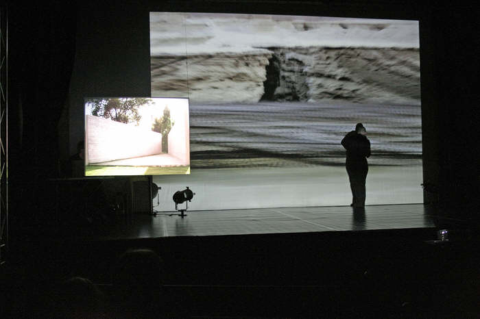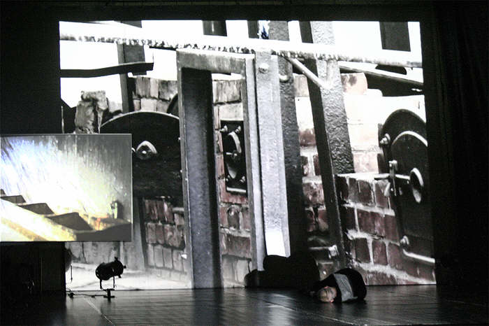 Der Körper verbindet sich mit Videobildern, die eine Realität widerspiegelt, die uns bedrängt. Verarbeitet werden Gefühle und Ansichten über Tanz, live erzeugte Klänge, die sich mit Alltagsgeräuschen verbinden und teilweise elektronisch verfremdet werden...