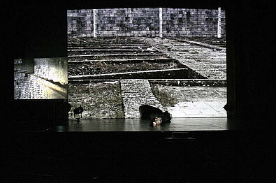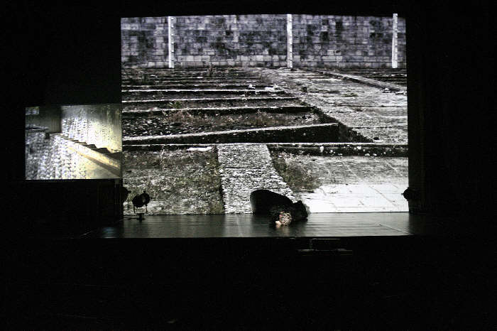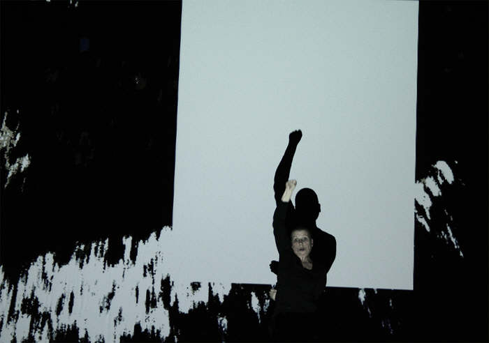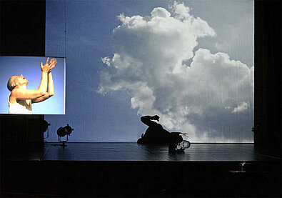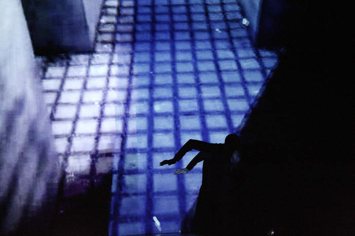 Videobilder „verschlucken“ den Körper. Licht hebt ihn heraus.