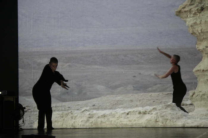 Wir drehten in Deutschland und Israel - dort u.a. in der Wüste Negev. Trotz faszinierender Weite, blauem Himmel und Schönheit fanden sich in tänzerischer Bewegung Beklemmung, Einengung und Härte wieder. Warum? War es unsere Unterkunft, eine mit Stacheldraht gesicherte Hotelanlage? War es der immer wiederkehrende Eindruck, egal an welchen Orten wir uns aufhielten, gefangen zu sein?