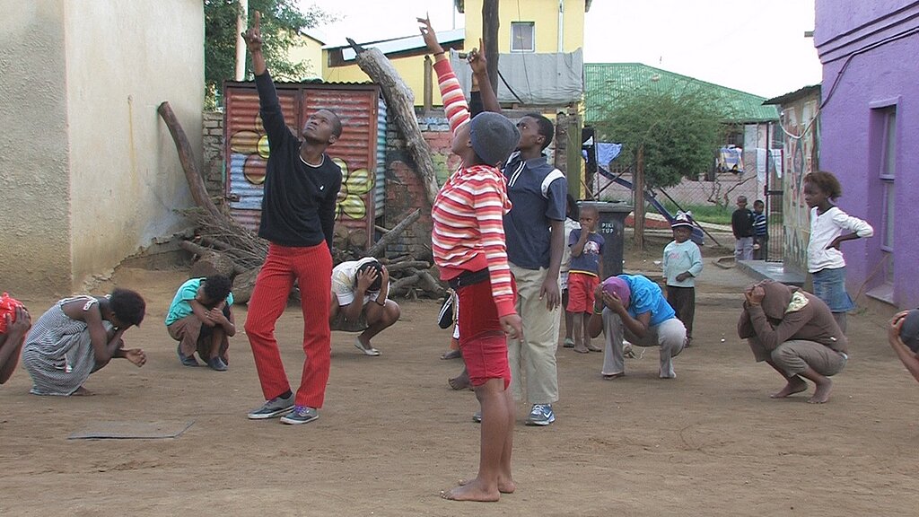 Wir entwickelten Tanzszenen in verschiedenen Plätzen im Johannesburger Stadtzentrum, in Soweto und in SKY, einem Zentrum für einige der am meisten benachteiligten Kinder in Südafrika. SKY wurde 1987 von Bob Nameng gegründet, es unterstützt Kinder und Jugendliche aus Kliptown in Programmen, die Klassen für Sport, Performance Kunst, Frauenrechte und Lebenshilfe umfassen. http://www.sky-basement.com/index.php