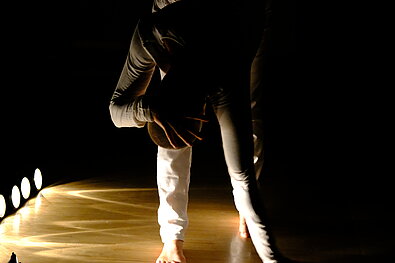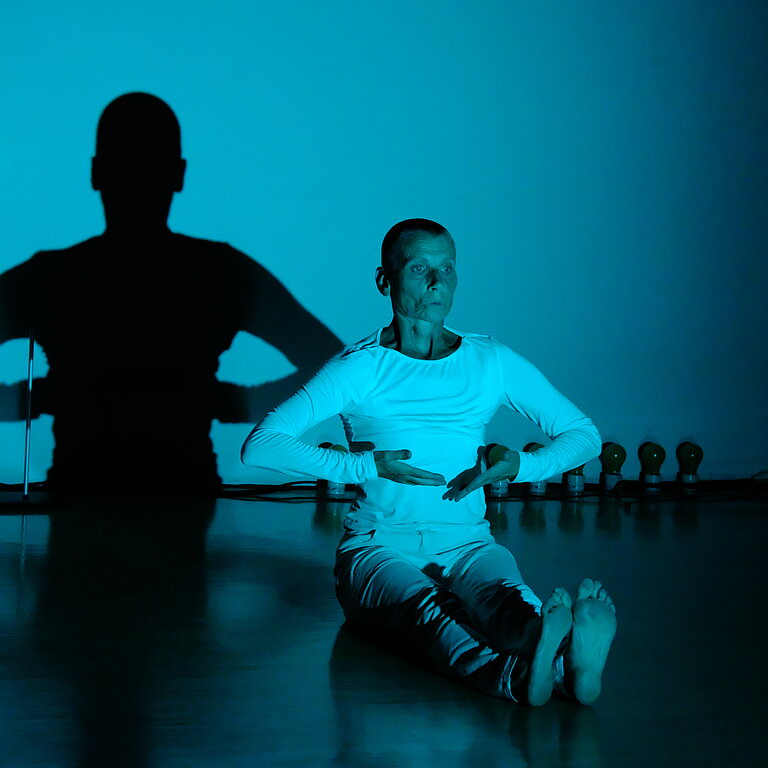 TanzRAUM: Fine Kwiatkowski wechselt in ihrer äußerst eigenständigen Bewegungswelt immer wieder die Perspektiven; als Skulptur verharrend, als Wesen nicht greifbar. Dabei offenbart sie subtile Einblicke in innere Zustände, die jeder kennt.