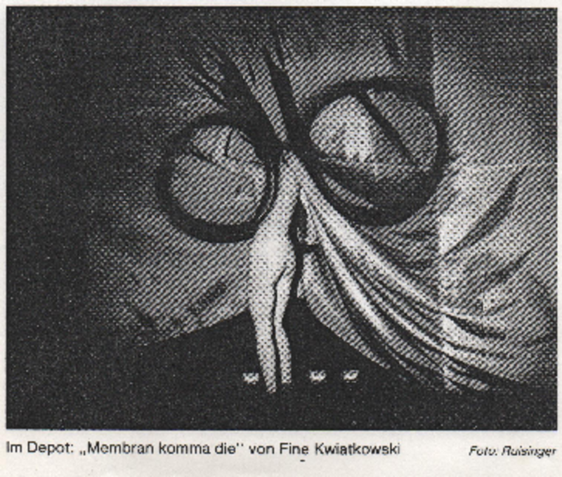 Für das Stuttgarter Tanzfestival "Sprachen des Körpers" entwickelte ich, gemeinsam mit dem Bildhauer Schang Hutter, dem Bühnenbildner Klaus Mertens und dem Filmer Wolfgang Scholz "membran komma die".